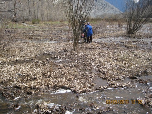 Спустились без проишествий. Хотя перевал в очень плохом состоянии, прошлый раз я даже не уделял внимание спуску по нему, теперь приходится двигаться с осторожностью, да и Лена, которая каждый год сюда ездиет, а иногда и по несколько раз, говорит, что в таком состоянии перевал она видит впервые. Забегая вперед, скажу, что каждый день наблюдали садившиеся на перевале не пузотерки 9как обычно). а вполне серьезные машины - Паджеро, УАЗ, террано.... Что ждет туристов, когда наступит летний сезон?
