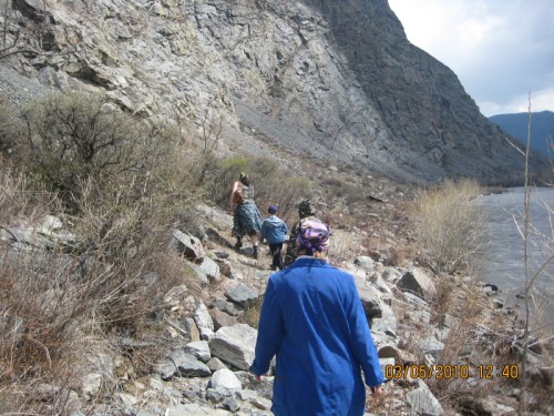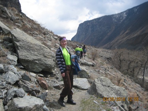 На следующий день было решено переправиться через Чулышман и сходить на водопад Куркуре. Переправлялись на своей лодке. В поход двинулись Я, Люда, Лена, Марина и наш Сережка, который как заяц с энерджайзером был полон энергии и незнал усталости