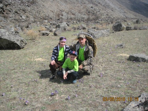 И так вся компания оказалась в сборе - я с женой Людмилой и сыном Сережей. Таежники Саша и Лена с дочерью Светой и собакой Тимоном и Марина с сыном Ильёй.