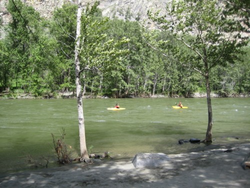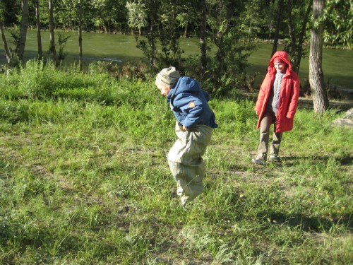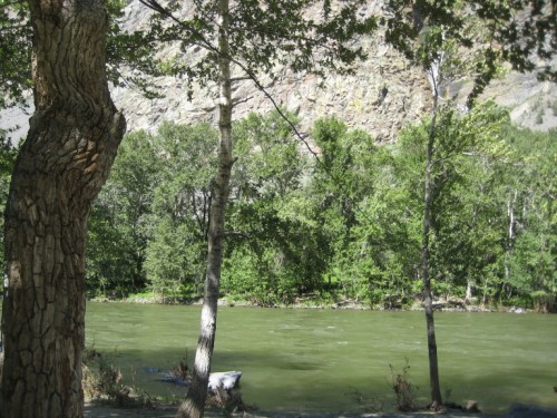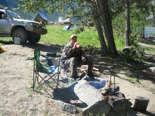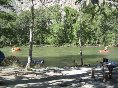 Во время ожидания словили некоторое удивление... никогда не видел сплавщиков по Чулышману мимо Кату-Ярыка, поэтому при виде первой группы я от удивления чуть не выронил бутылку с пивом. При чем меня развеселил наш разговор-перекличка: