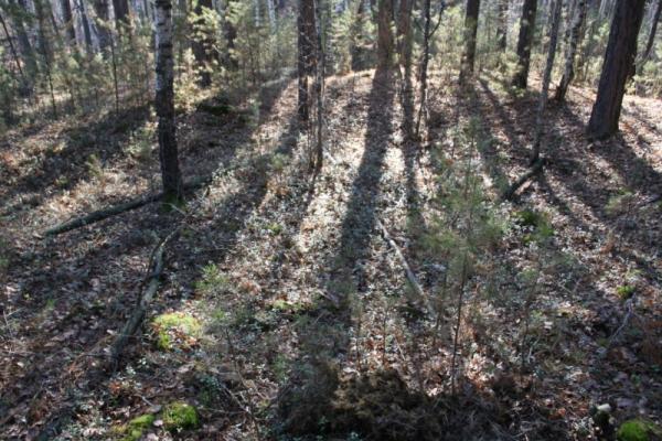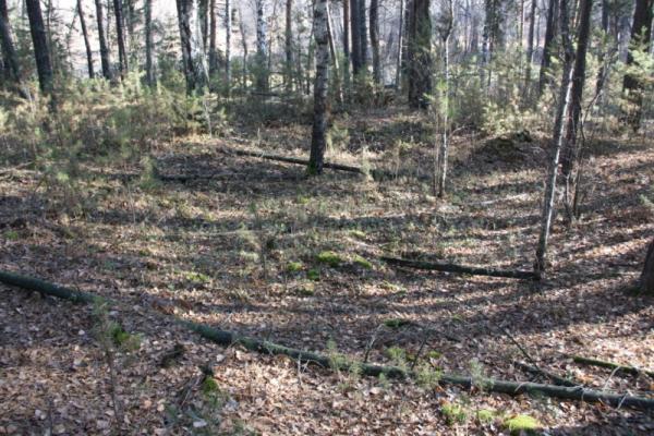 Ну а теперь серьезно - на фотках очень плохо видно, т.к. при съемке вблизи не хватает угла обзора, а если снимать из далека, то в лесу все сливается. Но на высотке, под которой раньше явно было старое русло Оби присутствует большое колличество старых рвов идущих полукругом, и в центре территории, которые окружают эти рвы, видно большое колличество утопленных площадок диаметров около 4 метров - видимо следы от построек: