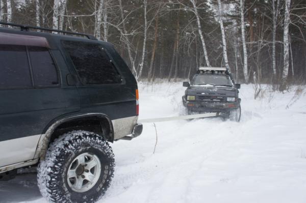 Нужна машина с лебедкой, желательно тяжелее чем Террано, т.к. пытались выдернуть подобной машиной, не смогли.