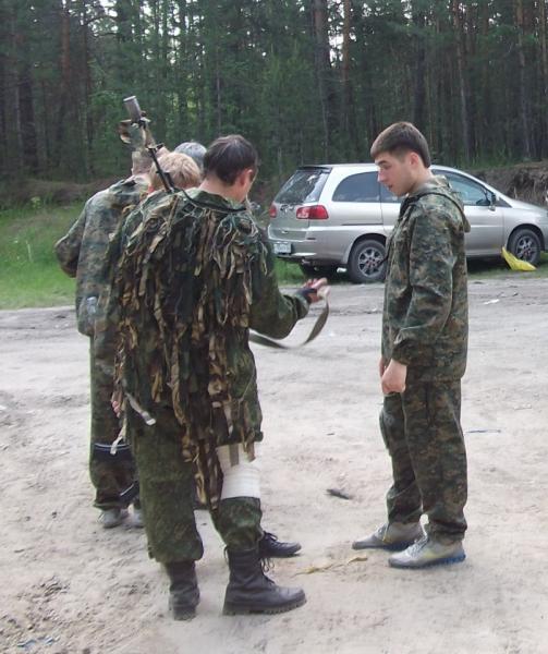 одежда спортивная, но камуфляж выдадут (одевается сверху)! кол-во участников - ограниченно кол-вом стволов(25шт)! 4 часа игры стоит всего 500 рублей, игра очень увлекательна и сложна (имитация боя в реальных условиях)! 4 часа беготни по лесу (2км на 2км)со 100% макетом оружия (вес) ! все желающие записываемся завтра в клубах и вносим предоплату(можно увеличить кол-во стволов) или придётся импровизировать на месте!с собой обязательно питьевая вода и репелленты (от клещей).