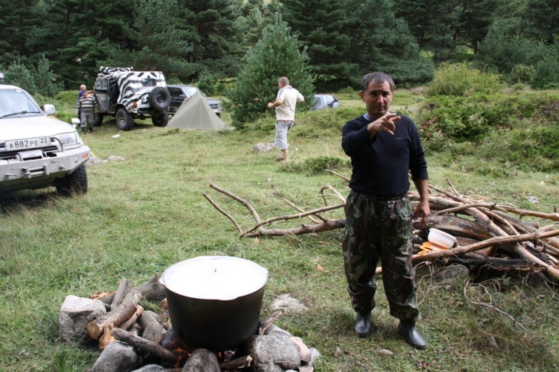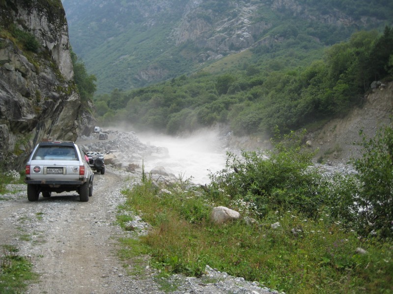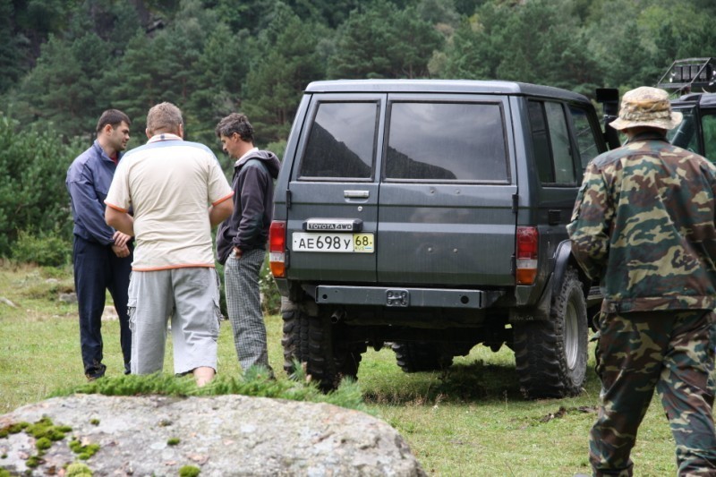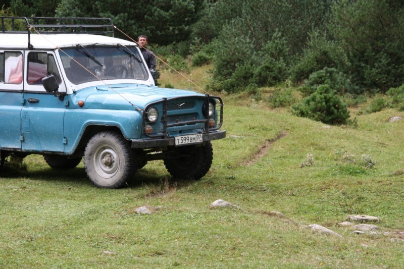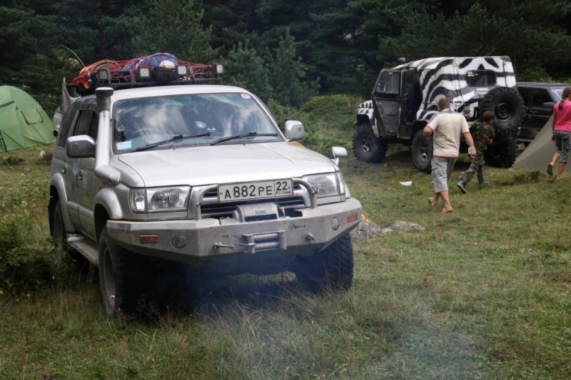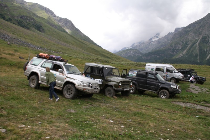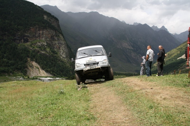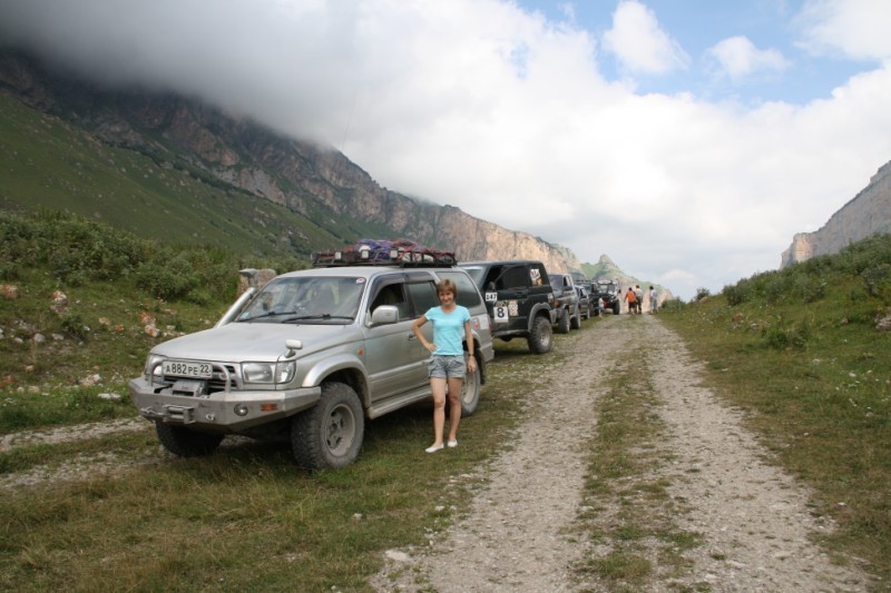 Нагулявшись по Новороссийску, к вечеру приехали в Краснодар, откуда примерно в час ночи тремя машинами выехали в сторону Нальчика. Дорога долгая, в Нальчик приехали только к 10 утра. Встретились с остальными участниками поездки – не считая машин джиперов Кабардино-Балкарии (часть которых подъехала позже, уже непосредственно на финишную точку маршрута), на месте сбора оказалось 8 машин из Краснодарского края, одна Ростовская команда и мы – Барнаульцы. Ребята из клуба КБР4х4 приготовили очень интересный и живописный маршрут. Пропуска в погранзоны были заказаны заранее, поэтому проблем с доступом в приграничных зонах не возникало.