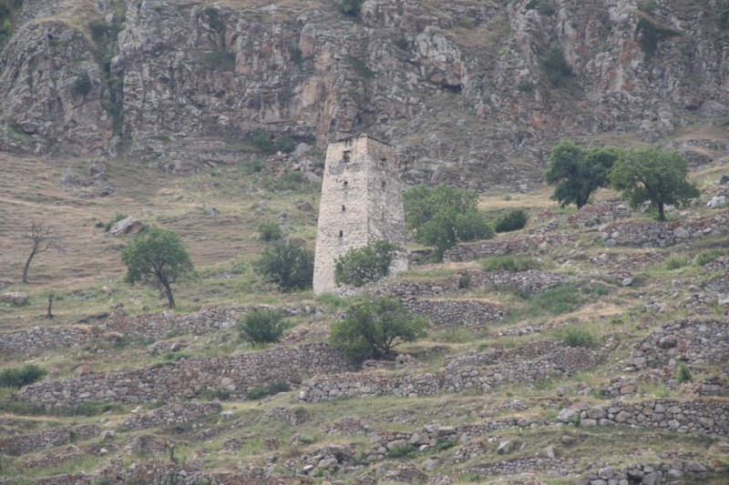 Не далеко находятся развалины древнего селения Коннюм с прекрасно сохранившейся башней: