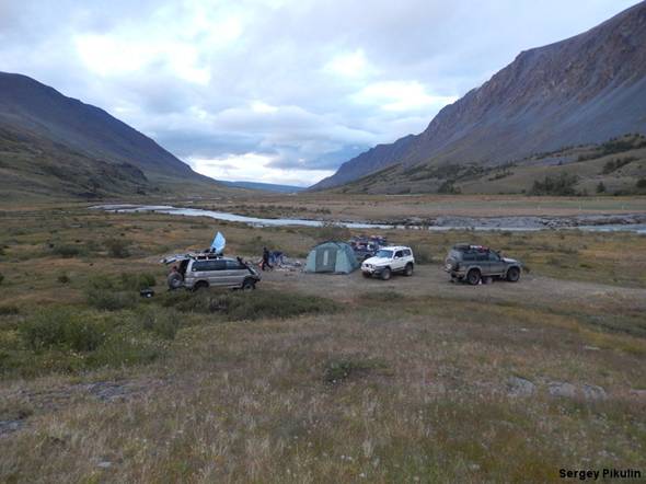 Кстати, место это не такое уж безлюдное, недалеко от нас обосновалось три лагеря: туристы из Подмосковья на Шевролет, парни из Барнаула на УАЗике-буханке (с ними мы встречались в Кош-Агаче), туристы из Новосибирска на Паджеро-спорт (их мы встречали и по дороге в Беляши и на слиянии Аргута и Коксы).