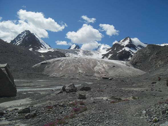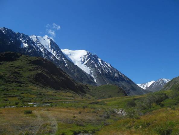Фото № 7. Вид со стоянки, через 5-6км Софийский ледник. Только пешие тропы.