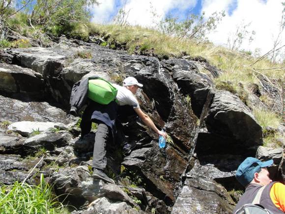 Примерно через час пути Серёга сказал, что дальше они с Андрюхой не пойдут. Дорога оказалась непростой, а ребёнок пяти лет и сам перебираться не сможет этими тропами и нести его тяжело. Оставив их отдохнуть перед обратной дорожкой, мы пошли дальше. Дорога стала ещё сложнее, пошли камни, которые становились всё больше и больше, мы стали чаще делать привалы, питьевую воду набираем в ручьях: чистейшая и вкуснейшая жидкость плещется прямо по камням.
