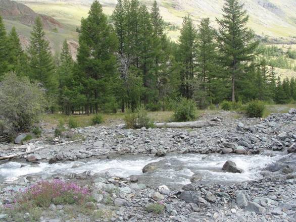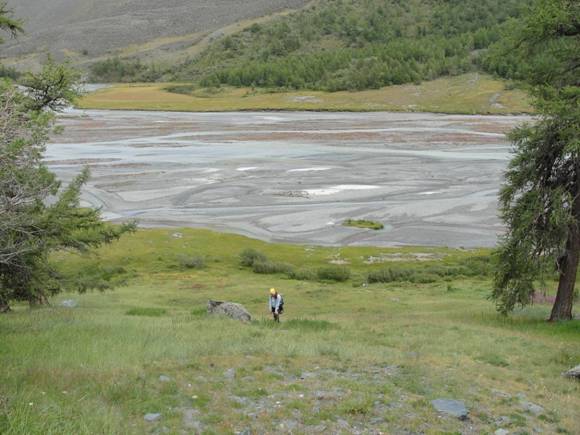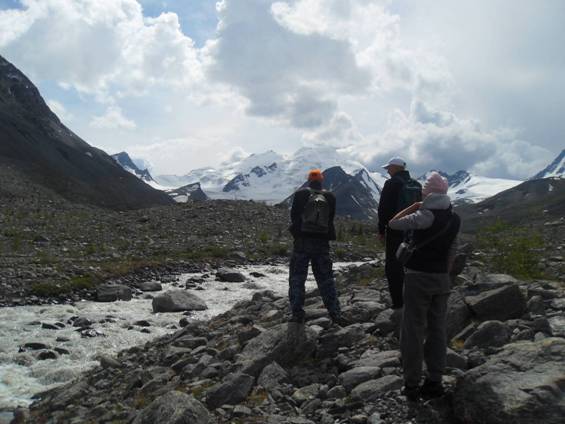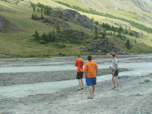 Немного отойдя от ледника, мы встретили четырёх пеших туристов из Ярославля. Они уже побывали на леднике и ставили палатки на ночевку.