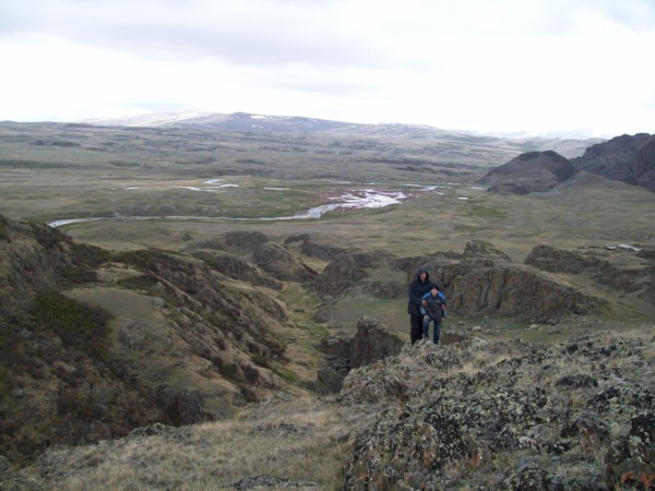 , бросаю ему сапоги и он, посадив Мишу на плечи, переходит сам. Д.Н. и Вадим остаются у машин, желания тащиться пешком в гору у них явно нет. Продолжая доверять навигатору идем, душой уже понимая, что доверяем зря. Упрямо прем вперед, пройдя порядка 2 км упираемся в пустое место, кругом только куча снующих сурков. Возвращаемся, держа курс на оставшуюся позади с лева гряду скальников.