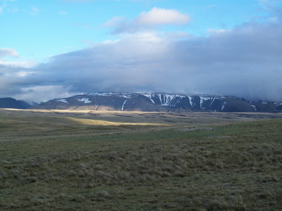 По пути делаем небольшую остановку у места, где была найдена знаменитая принцесса Укока. Все сфотографировались сами, сфотографировали кладбище. Ну вот и застава. К нам выходят двое погранцов, один забирает пропуска, паспорта на отметку, второй остается с нами (наверное соскучился по общению в этой глуши) Парень оказался словоохотливым, рассказал какая хорошая рыбалка на озерах, и конечно огорчил нас, сказав до намеченной, конечной точки маршрута оз. Алахиннского нам сейчас не добраться, хотя и вселил надежду на будущее, что вроде как есть подобие дороги на озеро со стороны Джазатора, может стоит попробовать на следующий год? Я по доброте душевной сходил в машину, взял полторашку пива и втихаря предложил пограничнику, который на отрез взят ее отказался, наверное всетки не до конца доверял нам. Наконец выходит пограничник и возвращает нам документы. Вперед… к озерам Кальджин-Куль-Бас и Кальджин-Суль., ведь там мы должны поставить базовый лагерь и немного отдохнуть, привести себя в порядок. Ну а потом… видно будет. Дорога дерьмо почва началась болотистая, не дай бог свернуть в сторону, погода тоже дерьмо. Доехав до верхушки небольшого хребта, открылся замечательный вид на эти поистине красивые озера, мы останавливаемся.