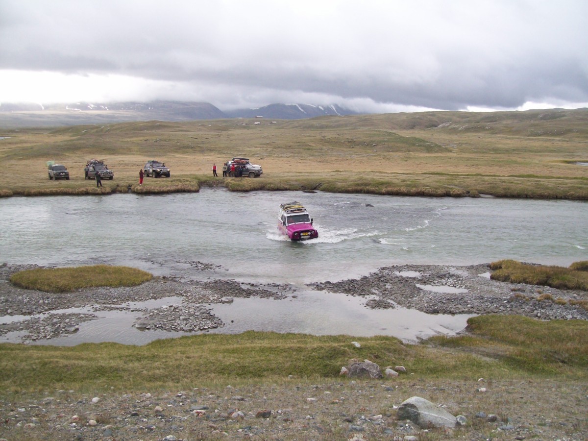 20.06. Опять встаем рано, наверное уже привычка, готовим по быстрому рисовую кашу, едим и начинаем движение к лагерю. Весь день посвящаем тому, что осматриваем проверяем машины, я беру электросварку и провариваю крепления багажника, готовим обед, обустраиваем жилье. Погода дерьмо, ветер, временами накрапывает дождик. Ближе к вечеру строим баньку, класс!!! Топим… Вова Роор достает воздушку и народ устраивает стрельбище, воздушка не пристрелена, большинство стреляет в белый свет. Стараемся подбить народ в обратный путь рвануть через Джазатор, ни кто не соглашается, вода пошла и бродов нет. Д.Н. расстроен, я, в общем тоже. Дождаться нашей очереди в баньку не успели, сильно клонило в сон. Народ напился, творил чудеса. Легли. Ольга умудрилась залезть в спальник в лыжном костюме, утром замерзла, ей объяснено, что в спальник надо ложится только почти голышом, а одежду либо в спальник, либо сверху. Д.Н., который улегся спать в Гаврюше, поступил так же как Ольга и тоже замерз. Утром завел машину и рванул куда то на ней, согреваться. Мы с Серегой как опытные туристы все сделали правило и холода почти не почувствовали, ночью было -5