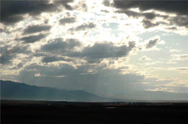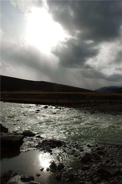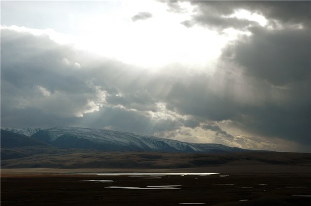 Вечерний Акташ,дождь полоскал нас от Белого Бома,затишье.Заночевали в поле возле Кош-Агача.