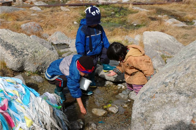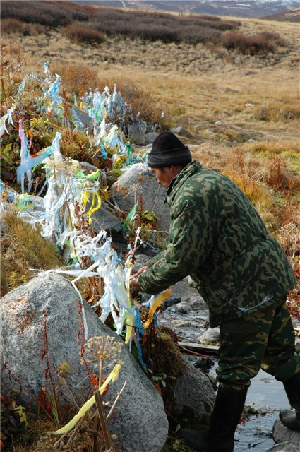 Алтайцы почитают своих духов,за купальнями небольшой пригорок из которого сочится много ручейков с лечебными свойствами.Есть лечебные камни.