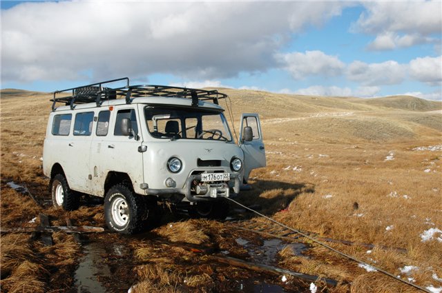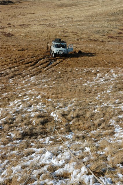 Задний мост сел на столько,что чай-джек не подставить - надежда на лебёдку, но куда лебедиться в поле?