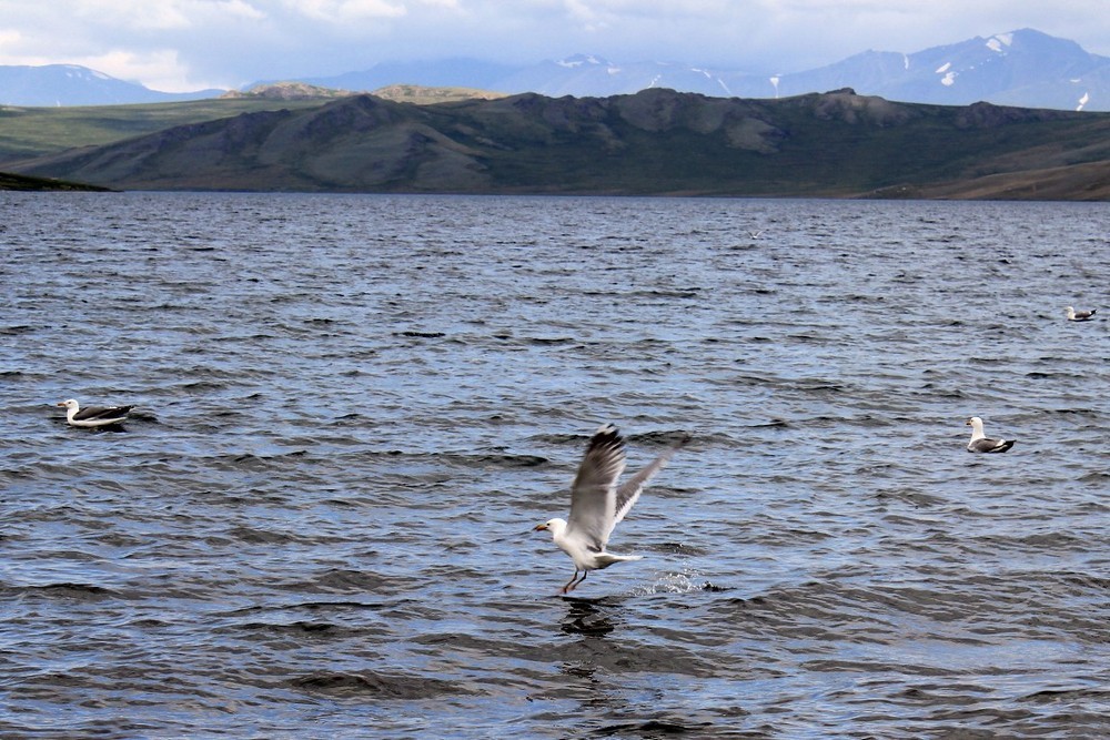 Пока разделывали рыбу налетела стая чаек и начала кружиться над нами в ожидании дармовой рыбки. Они устроили такой галдёж, борясь за немногочисленные отходы.