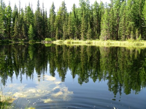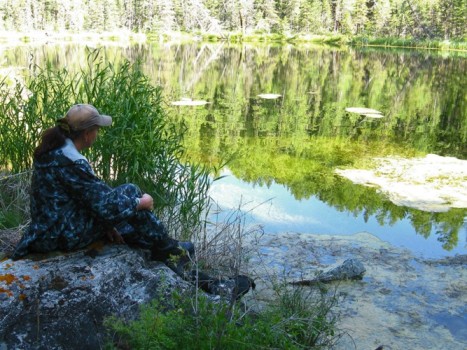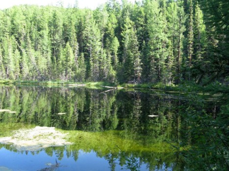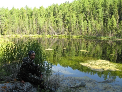 На покосе мы действительно нашли его отдыхающего за чаем. Он был очень нам рад. Мы вместе вернулись в его землянку и за чаем толковали о том о сём. Договорились, что вечером он спустится к нам в лагерь. А пока с его разрешения мы отправились на то самое озеро, о котором я уже писала раньше.