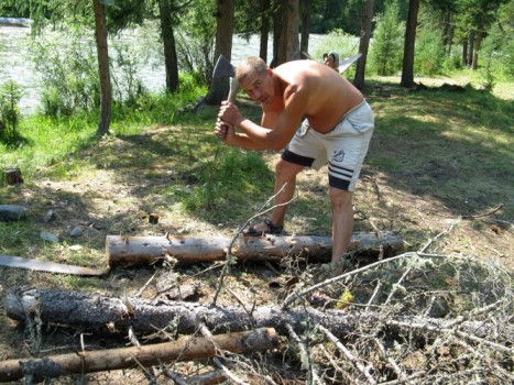 Решено было устроить банный день. Напилили в лесу сушняка.