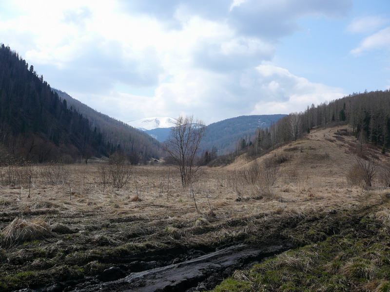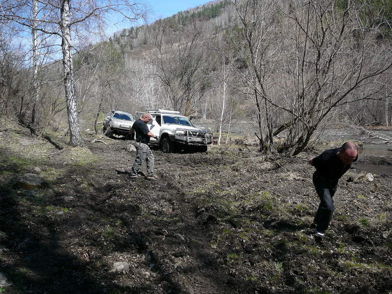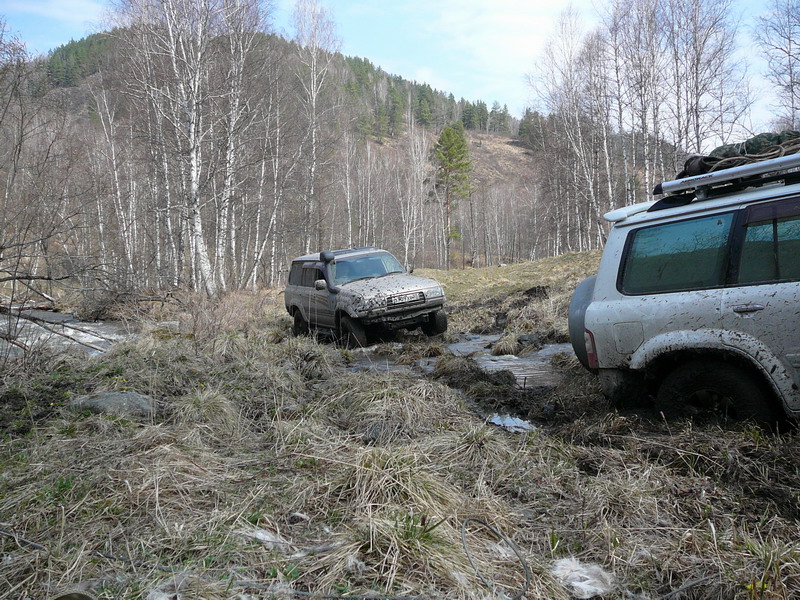 Говорят, что часа полтора назад прошли джипы с большими колесами. Куда нам до них, с нашими машинами не сравнить. Идем своим путём и своим графиком: до вечера, по плану, нужно добраться до р.Бол.Татарка по левому берегу Чарыша.