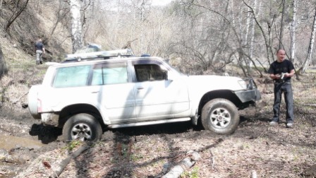 Немного побуксовав, удается выкарабкаться без лебёдки. Видать не зря на воскресные покатушки выезжал.