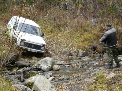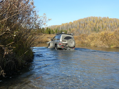 ...и продолжительным бродам, которых за первый день мы насчитали около десятка, глубиной не более 50-60 см., если напролом не биться