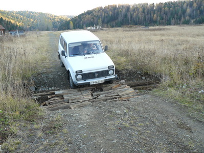 При виде Нивы местные жители посоветовали перебраться на другой берег реки посередине деревни через брод наискосок, так как в конце деревни воды было около метра, что мы и зделали