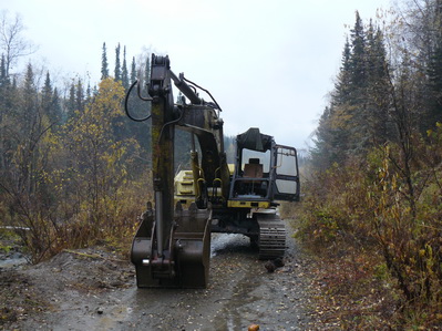 Кем то забытый на дороге экскаватор навел нас на мысль о неудавшемся побеге из колонии-поселения