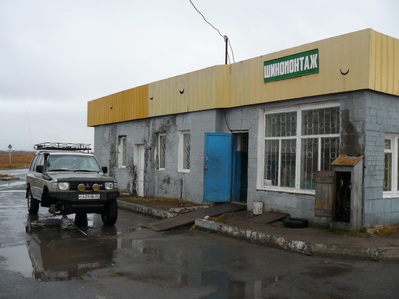 После Аскиза на Т-образном перекрестке уходим сначала направо заправиться и вставить камеру в спускающее колесо, в паре километров АЗК Роснефть