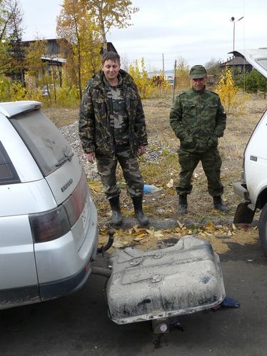 Переночевав в машинах, в местной единственной автоколонне попросились на яму, слили бензин, сняли бак, выпарили в течении часа выхлопной Ваз-2111, в ста метрах от автоколонны шиномонтаж и сварка. Помыли бак фэйри, заварили, еще раз помыли бензином поставили. Пока двое бойцов занимались баком, двое заполнили документы на въезд в погранзону. Пропуска пообещали отдать через день, это нас устраивало, почти по пути была Тоджская котловина.