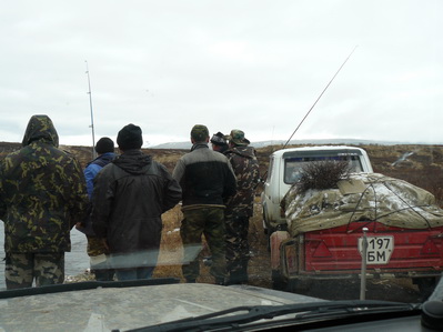 Встреченные Абаканские рыбаки поведали нам историю о золотых прииисках Ойна, Демиржи, Хорал, расположенных правее перевала Мюн, о инспекторах рабнадзора с КАЛАШАМИ, о запрете ловли хариуса до 10 октября, и о штрафах за голову в 250 рублей. Отчаяные люди - вчетвером на Ниве с прицепом ...