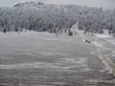 Проехав от Бояровки километров 90 со средней скоростью 20-30 км. в час мы оказались у плавного подъема на перевал МЮН, навстречу шли два Камазика с цепями на колесах