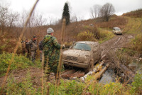 На маршруте много болот, кустов, глины, валежника и других увлекательных препятствий.