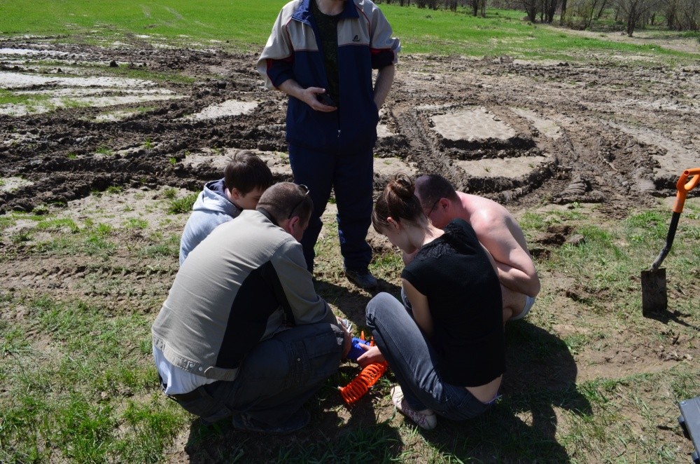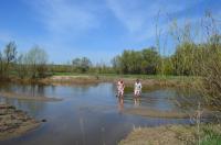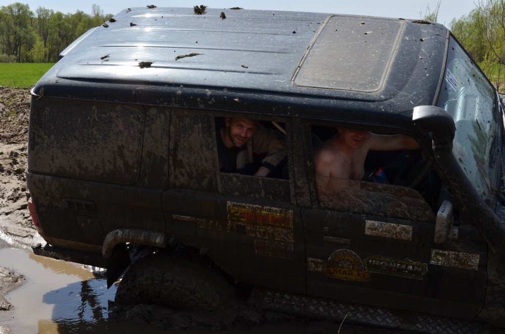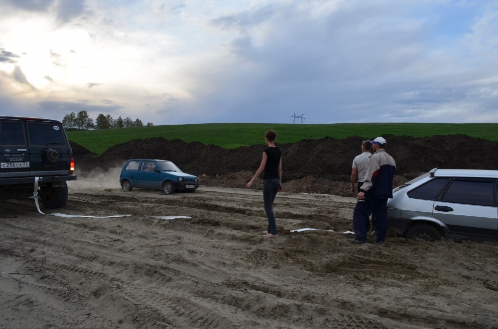 Не дождавшись Алексиса в Научном городке в 9.30 отправились в 2 машины в составе 6 человек. Решили что Алексея всё равно ждать на переправе через Касмалу поехали полями и берегом Оби. Немного проплутав немного выбрались к переправе через Касмалу и опытным путём установили, что проезжать ещё рано. Искупали прадика, покопали, замарали илом, и полебедились немного. Дальше двинулись в обход брода на предполагаемое место обследования, но приехав обнаружили Атлантиду. Обь поднялась и всё затопила. Едем обратно через городок, но на этом приключения не закончились. Пришлось поработать эвакуаторами.