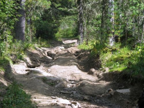 Да местность там мягко говоря не сахар,скользкая трава,острые камни,нехилые углы подъема,да и грязи немеренно,дорожная резина там не канает - проверенно.