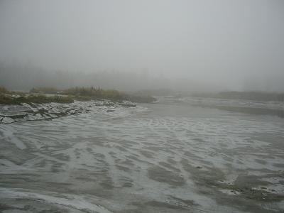 мерзлый песок,потом мокрый песок, потом грязь, глубже не бурили