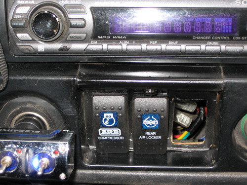 А кнопочки управления вставил вместо пепельницы на передней панели (все равно не курю и курить в машине никому не разрешаю). Сразу приготовил место под кнопку блокировки переднего моста (очень надеялся, что успеет придти до майских праздников, но .....