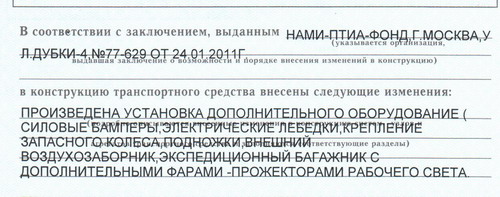 Ну и самое главное - пришло заключение с НАМИ о соответствии внесенных изменений требованиям безопасности. Думаю в конце месяца займусь узаконением дальше.