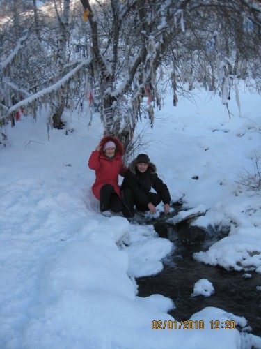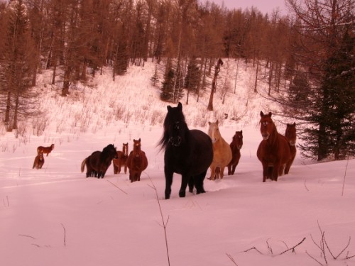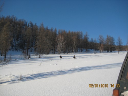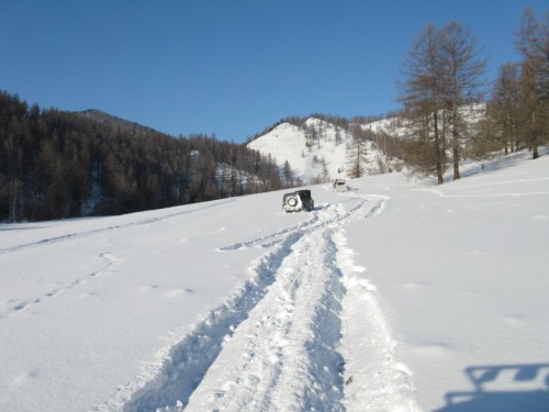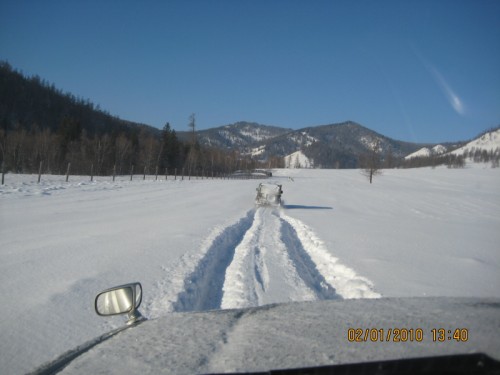 которая указывала дорогу и мы помчались вперед через Каракол по заснеженным полям