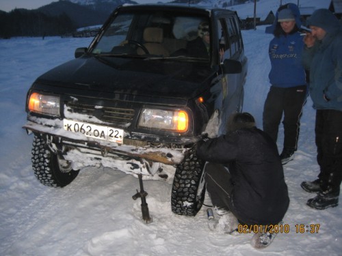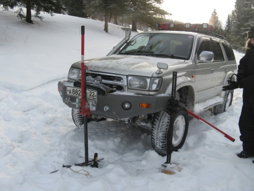 Но нет худа без добра - я выявил некоторые слабые стороны своего нового бампера - т.е. выяснил на опыте в каком месте его нужно усилить и что доделать, чтобы нормально цепляться ХайДжеком. А пока пришлось поднимать 2-мя Джеками