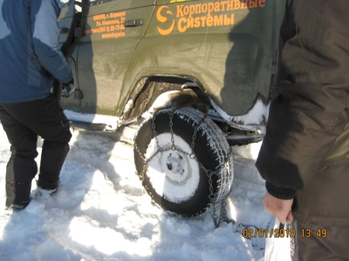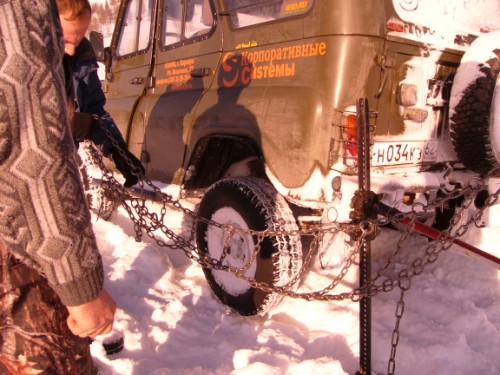 УАЗу уже было мало одного комплекта цепей на колесах, я дал свой запасной