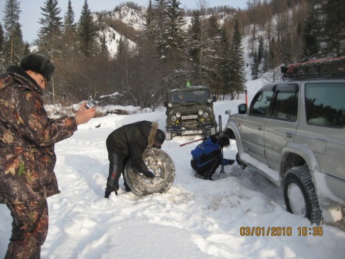 Также учитывая поломку Буханочки, собравшись и позавтракав, в 8 часов утра мы выдвинулись в путь на 2-х машинах - Лехином Гаврюше и моем Элефанте. По дороге устроили небольшую фотосессию зимнего Ануя
