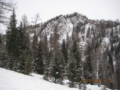 Вот здесь, по натоптаным гуляющими в горах конями тропам, можно было обогнуть эту гору