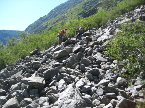 Дальше продолжалась обычная горная тропинка с местами перекрывающими её обвалами камней и мелкими речками. Особых проблем это не создавало, к томуж недостатка в питьевой воде мы теперь на испытывали и вдоволь напивались при каждом броде.