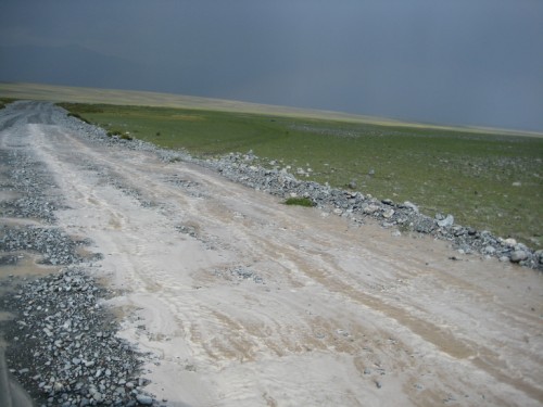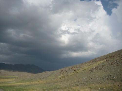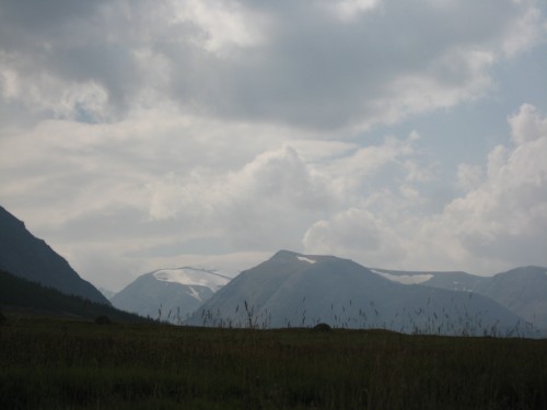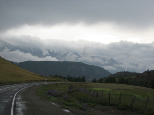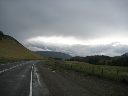 Погода окончательно испортилась. Выезжая на Чуйский тракт, мы надеялись, что тучи уйдут в сторону Кош-Агача, но небо было обложено ими во все стороны, небыло видно ни гор по правой стороне трассы, ни ледников по левой, ни вершин Северо-Чуйского хребта при подъезде к Акташу