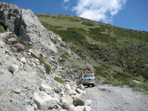 Тот последний спуск, который привел к стрелке Аргута и Карагема по дороге в эту сторону, вроде не казался мне сложным, но при обратной дороге оказался весьма опасным горным крутым подъемом с обсыпающимися поворотами. Преодолев его и стоя на первой площадке перевалки я всерьез забеспокоился за Таежников - у них-то центр тяжести авто гораздо выше моего.