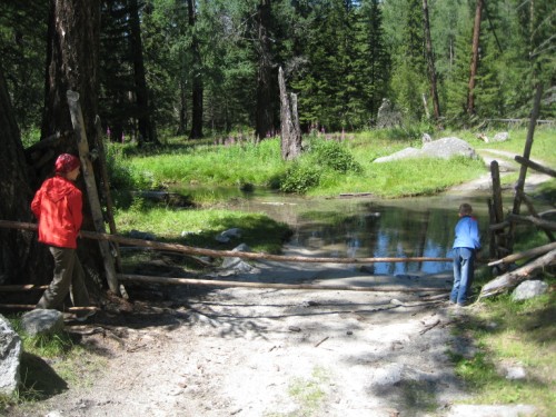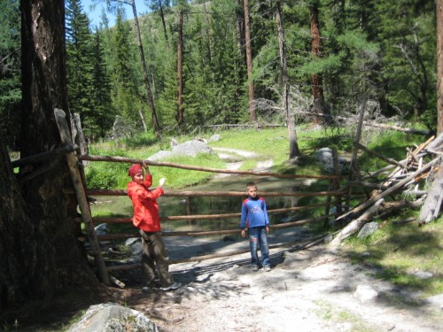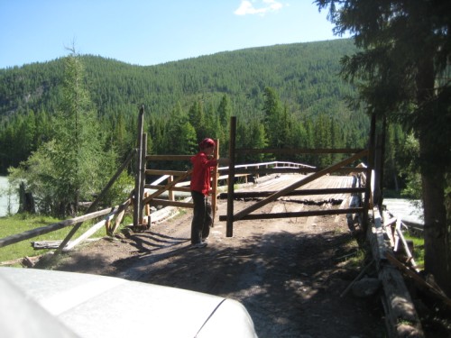 Мост через Аргут в степь закрыт воротами. Открыв его, проезжаем на другую сторону Аргута.