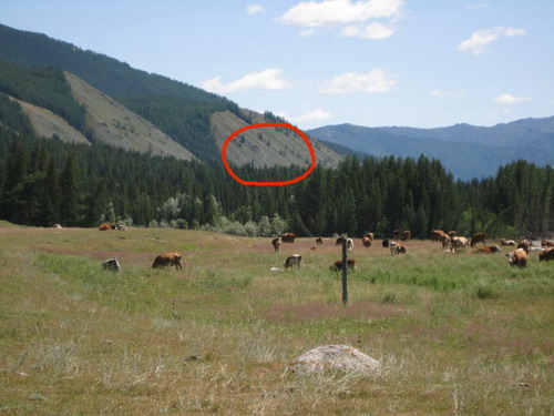 Председатель общины сказал, что возле моста через Карагем где-то вверху есть петроглифы мамонта. Хотя сразу сказал, что увидеть их можно только сверху, т.к. выбиты они на горизонтально лежащем камне. Я решил попробывать их найти и полез в гору.