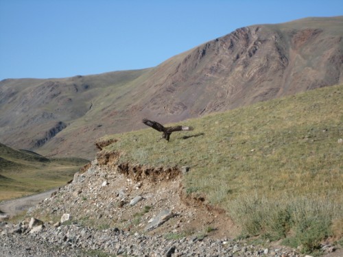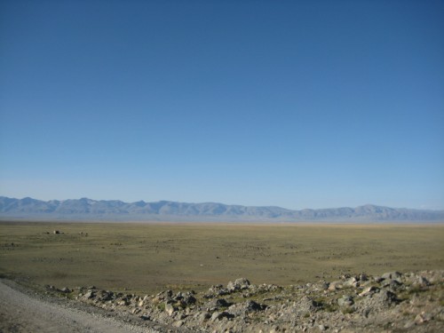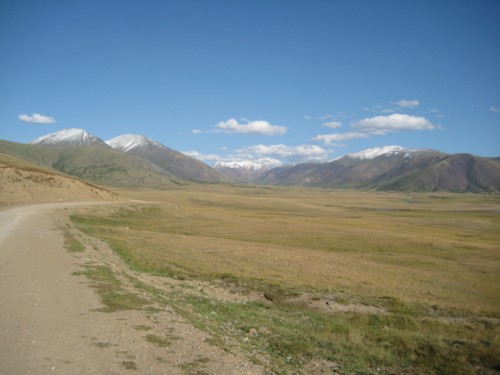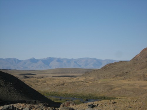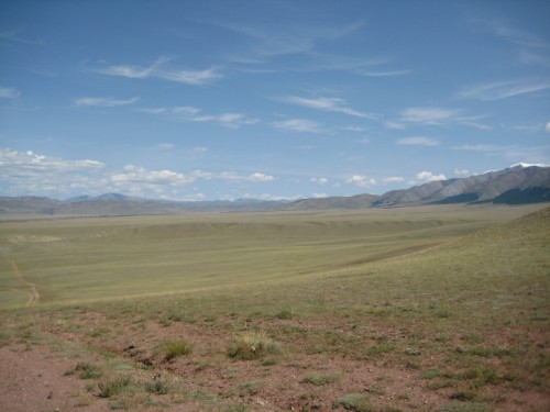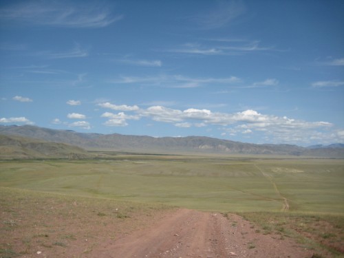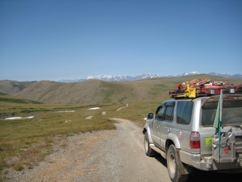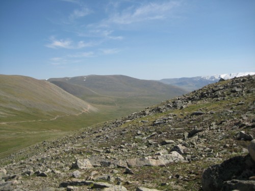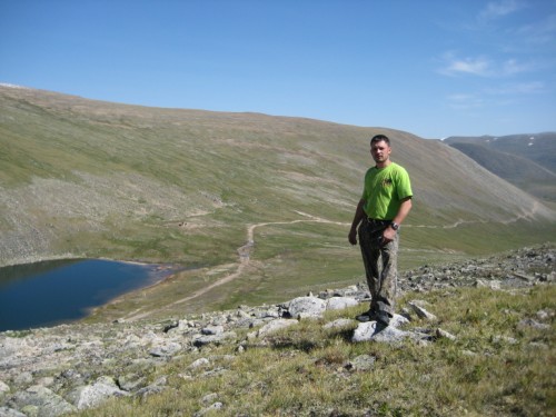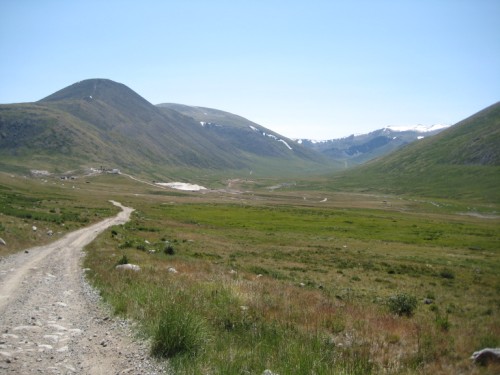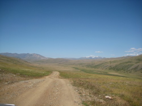 Мы с Сережкой решаем, для полного счастья добежать по горам до отметки 3000метров, и любуемся от туда просторами и проходящей по ним дорогой на Укок.