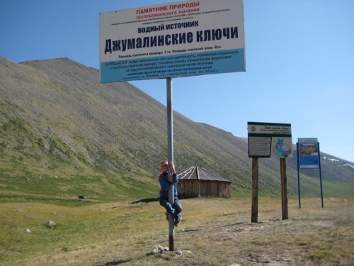 Подъехав к домикам, нас встречает смотритель и сообщает, что ночлег платный (вроде как сказал что 400 руб на всех нас за ночь) в пошлом году никому не платили, хотя был еще не сезон. За проезд через перевал в зону Укока тоже прям здесь берется сбор, в прошлом году я получал письменный пропуск в администрации Укока в Кош-Агаче. Узнав, что в баньке с радоновыми источниками мыться строго запрещено - это их священное место, можно только подтопить её для теплоты и окунаться в источники, а брать банные пренодлежности с собой не разрешается (а в прошлом году мы такую баню с пивом там устроили..... эхххх....), мы решили, что останавливаться тут на ночлег не будем. Сказали, что просто поднимимся на перевал и спустимся обратно. На том и договорились, что если спустимся сегодня, то денег с нас не возьмут. И мы поехали наверх.
