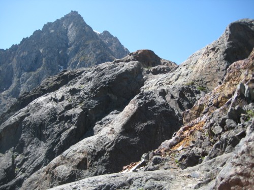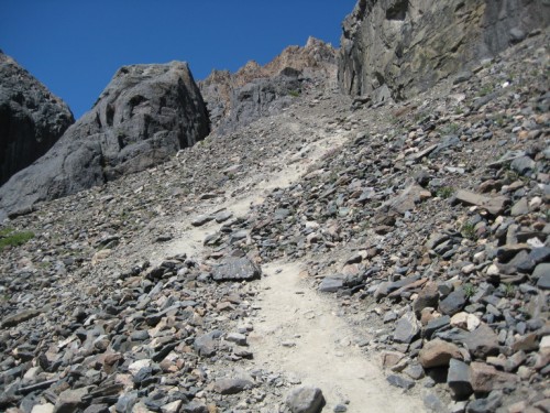 Здесь уже встречаются альпинистские тропки со вбитыми в скалу крюками